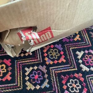 NWT Fitflop Lulu criss-cross slides size 8. Maroon / eggplant colour with light coral trim (best shown in cover photo). I tend to wear the toe thong style more but I’ve held on to these because the colour is hard to come by. They’re very soft and the straps are well padded. One corner of the box got damaged in transport (see photo). The sandals have no flaws.