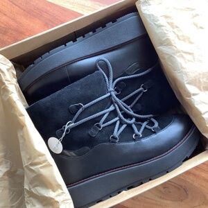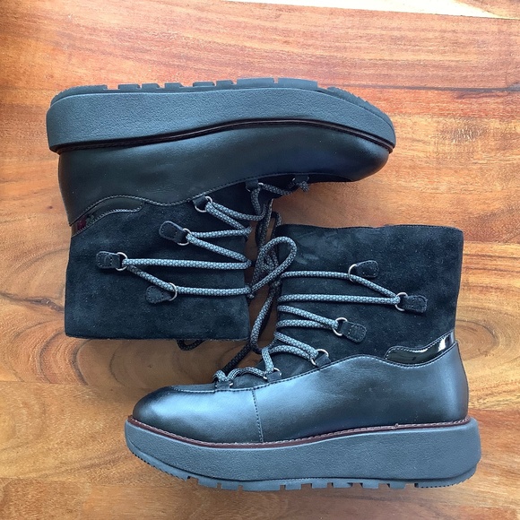 NWT Fitflop Skandi black leather boots size 8.5. I already have a pair and bought this 1/2 size up as “insurance”. Fantastic winter boots, incredibly comfortable, warm, and waterproof. Mine have survived four winters as my daily boot looking like new, with just boot wipes for the salt.