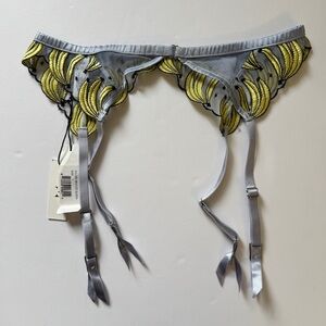 NWT Fleur Du Mal Garter Belt Banana Embroidery Lingerie Fruit Novelty Print Sz 1