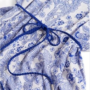 Brand new with tags. A beautiful long dress blouse by Laura size 6. Button up with a rope tie waist. Made from 100% polyester. 3/4 length roll up sleeves. Length 31", pit to pit 21".