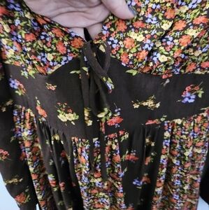 Brand new with tags Cottagecore hippy 70's dress from kohl's. So brand good for life ? not really familiar with the brand just loved the colors! little bit too small in the bust for me, I wanted to add patch pockets with mushrooms on them. Once again I held onto it and did nothing instead. So if this doesn't go I will return to my plan, however it's so stinking cute someone should be wearing it in public. Not likely to see another one, Dress is lined except for back of top and sleeves. gives gunne sax 70's Woodstock energy. 😍 Boho hot girl everyday vibes.
