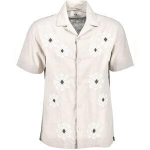 NWT Folk Linen Blend Kota Short Sleeve Embroidered Shirt Flowers Floral Ecru New