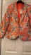 Vibrant floral blazer with pink and green hues. Perfect for a bold fashion statement. Would be perfect for the holidays!