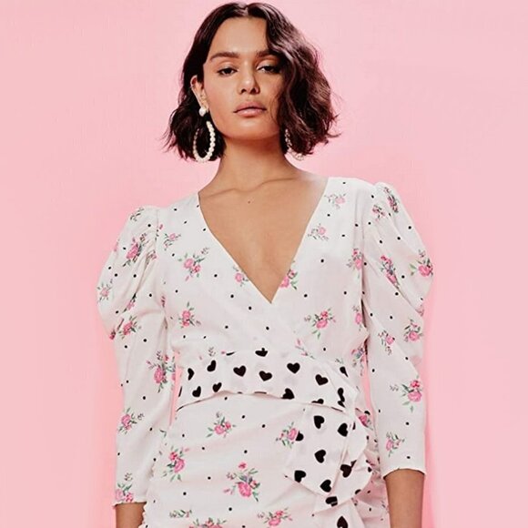 NWT never worn For Love & Lemons Mabel floral, dot & heart print mini dress