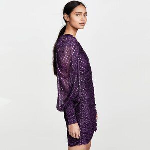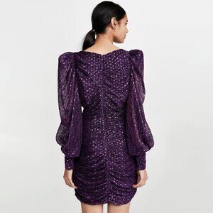 NWT never worn For Love & Lemons La Villette purple metallic polka dot mini holiday dress