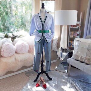 NWT For the Republic Denim floral applique embellished slim ankle jeans