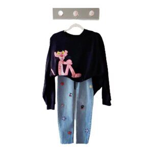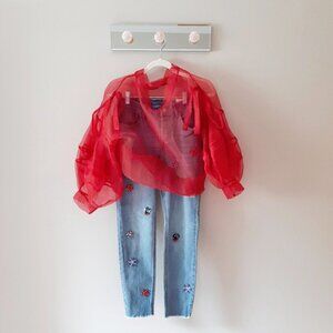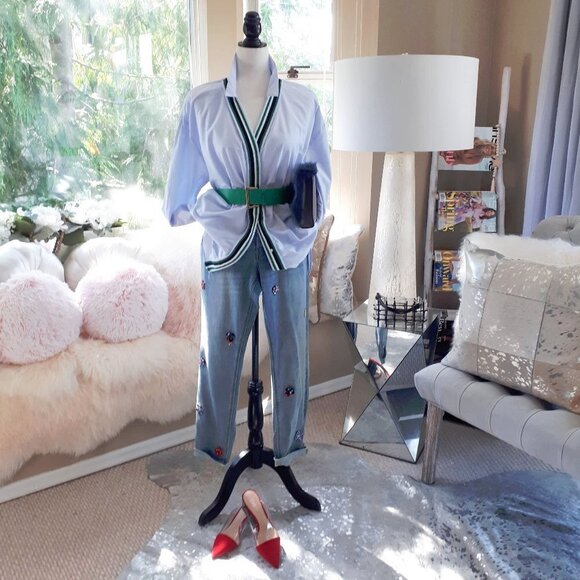 NWT For the Republic Denim floral applique embellished slim ankle jeans
