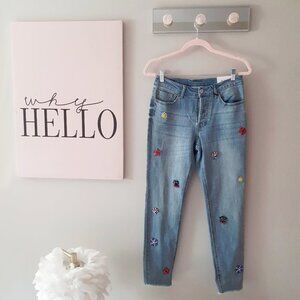 NWT For the Republic Denim floral applique embellished slim ankle jeans