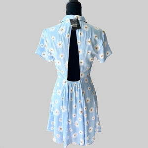 NWT Forever 21 Light Blue Daisy Open Back Button Down Shirt Dress