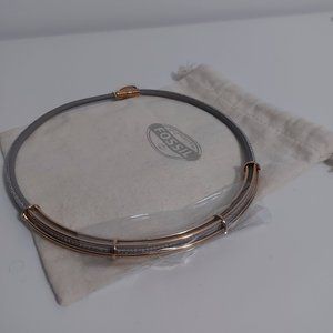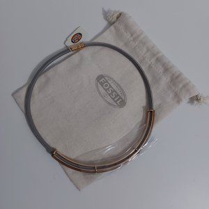 Brand new with tags Fossil Gray Rose Gold tube leather necklace. Comes in original packaging and a Fossil jewelry giftbag.