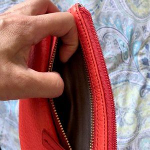 Bright orange color, very good quality genuine leather.