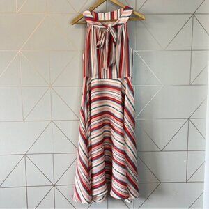 NWT Foxiedox Tadilta Bow Dress in excellent new condition. The Foxiedox Dress is inspired by summery hues. Cut from a multicolour stripe fabric, which has metallic thread running between each stripe, this striking dress offers a jewel neck with a bow tie and it sits at around knee length. Please see all photos.