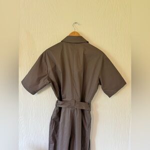 NWT Frank And Oak Clay Grey Gray Taupe Utility Combat Belted Button Up Collared Short Sleeved Oversized Parachute Jumpsuit