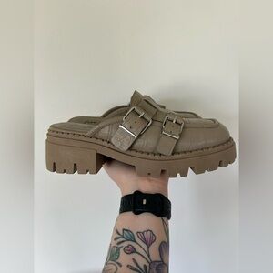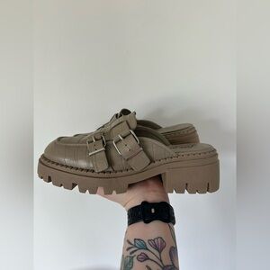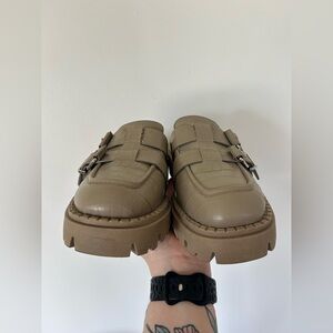 NWT Free People Buckle Lyra Lug Loafers Size 40/9 Mink Beige Mules Shoes