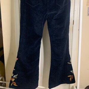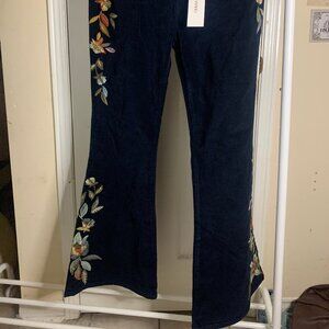 NWT Free People Corduroy Bootcut Pants | Dark Blue w/ Floral Print | Boho Statement Piece