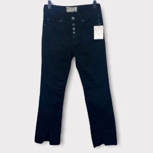 NWT Free People Cropped Button Front Black Jeans Size 24 Flare Denim Raw Hem NEW
