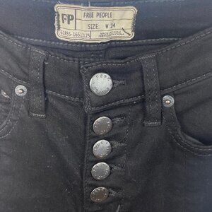 Free People Cropped Button Front Jeans in Women's Size 24. Straight leg with front slit details, 5 pocket styling. Button fly with button closure. 60% cotton, 26% poly, 11% rayon and 3% lycra. Brand new with tags! No flaws.