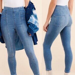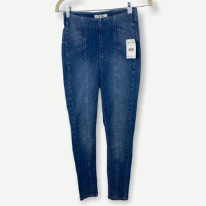 Free People Feel Alright Skinny Jeans in Riptide Blue and Women's Size 25. High rise. Elasticated waist. Patch pockets to back. Super skinny fit. An extra-tight cut to the body. 66% cotton, 28% poly and 6% elastane. Machine washable. Brand new with tags! No flaws.