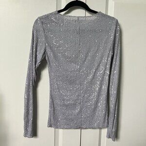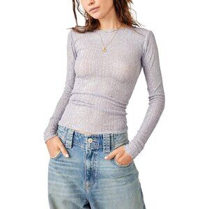 Free People Gold Rush Shirt Womens XS Long Sleeve Sequin Lavender Combo