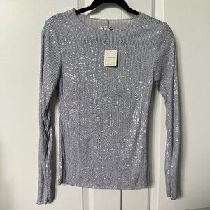 NWT Free People Gold Rush Shirt Womens XS Long Sleeve Sequin Lavender Combo