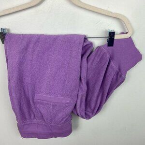 Free People Movement Radiant Joggers in Wisteria Purple and Women's Size Small. So soft and comfortable, these slouchy joggers are features in a terry design with fitted cuffs and a drawstring waistband. Slant hip pockets. Ribbed accents. Back pockets. Pull-on style. Viscose, cotton and poly. Machine washable. Brand new with tags! No flaws. Retails for $98 USD (approximately $136 CAD).