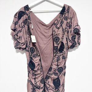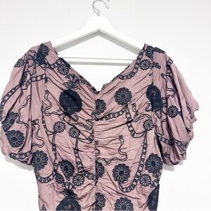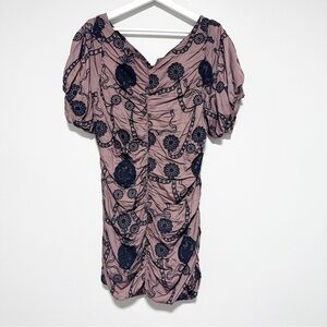 NWT Free People Ruched Women's Mini Dress with Floral Embroidery size L