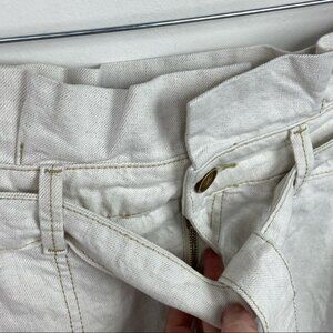 Free People Splendour In The Grass Skirt in Women’s Size 6 and a Neutral Colour called Oatmeal. From Revolve. High paper bag waist style. Cotton. Unlined. Zipper fly with button closure. Adjustable tie waist belt. Side seam pockets. Back patch pockets. Contrast golden stitching. Brand new with tags! No flaws. 80% cotton ans 20% lyocell.