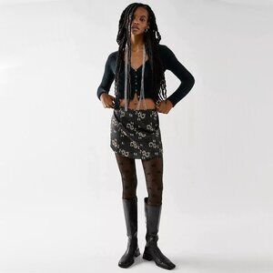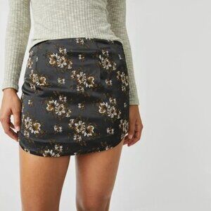 NWT Free People black jacquard floral print satin-like mini skirt, 8