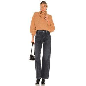 NWT Free People camel cowl neck oversize crop open knit sweater