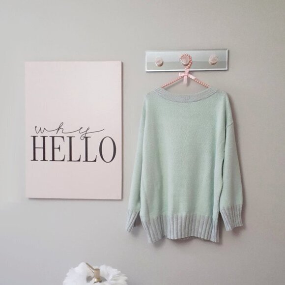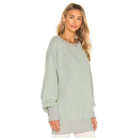 NWT Free People lime grey cotton blend oversize relaxed fit sweater, M