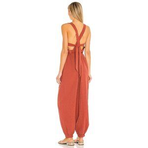 NWT Free People brick stitch work smocked bodice wide leg linen blend jumpsuit