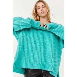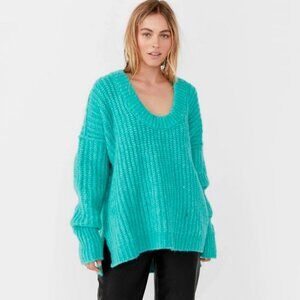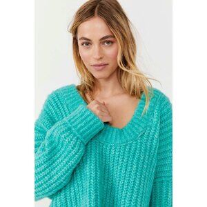 NWT Free People Blue Bell teal chunky knit V-neck sweater