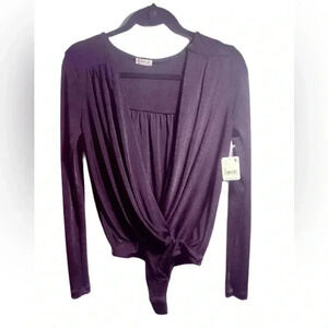 NWT Free People “turnt” long sleeve black slinky v neck sleek bodysuit XS