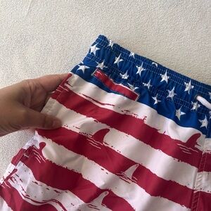 NWT Free Planet Men’s US Flag Shark Swim Trunks S