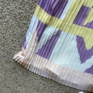 Brand new with tags. Stroppy flared dress in marquee parade colour palette. Size 2. When laying flat pit to pit is 16”, length is 39”. A soft yellow. Belted.