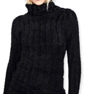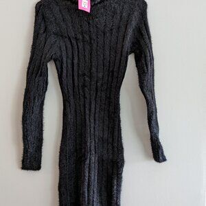 NWT Fuzzy Black Turtleneck Mini Dress Size M Autumn/Winter Bodycon Goth