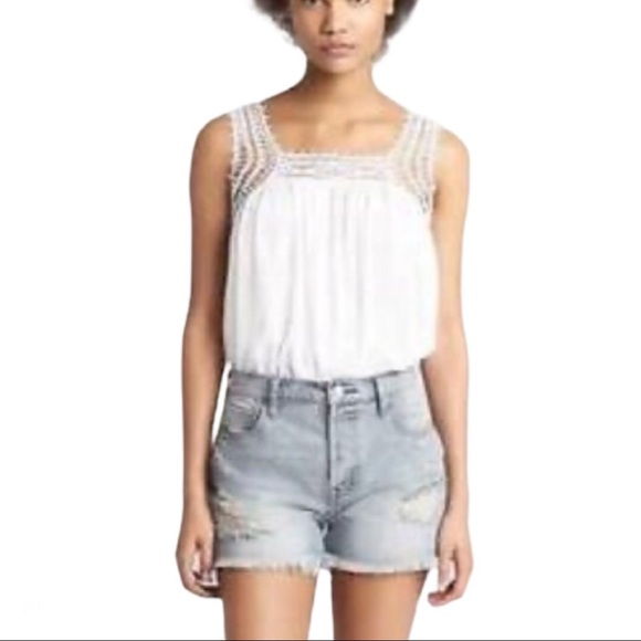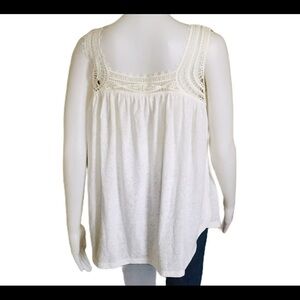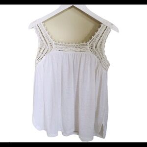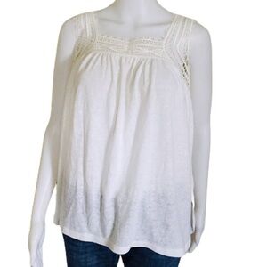 NWT GAP Linen Crochet/Lace Trim Tank/Top With Round Neck Ivory White Size Small