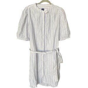 Brand New with tags GAP Striped Linen-Cotton Puff-Sleeve Midi Shirtdress Size L