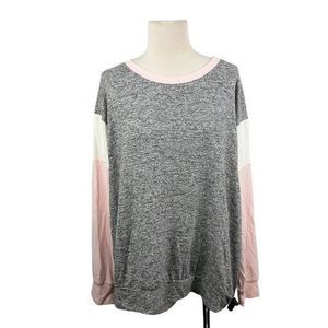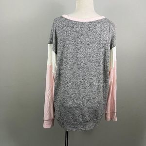 NWT GIBSON Grey Pink Scoop Neck Long Sleeve Sweater (XL)