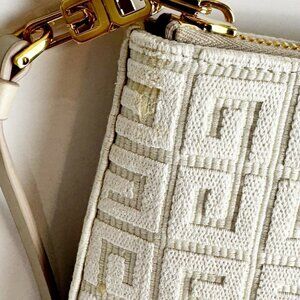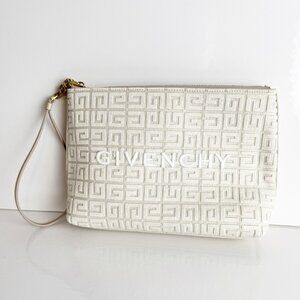 Givenchy raffia and cotton travel pouch wristlet with logo across front