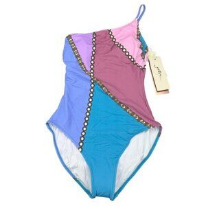 NWT GOTTEX Modern Shades One Shoulder Women's Swimsuit Size 6 Multicolor + Flaw