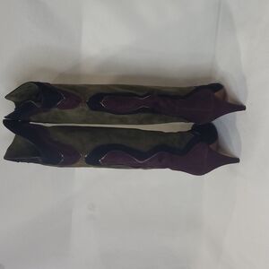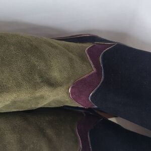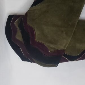NWT GRAZIA Suede Patchwork Kitten Heel Slouchy Tall Boots Made in Spain