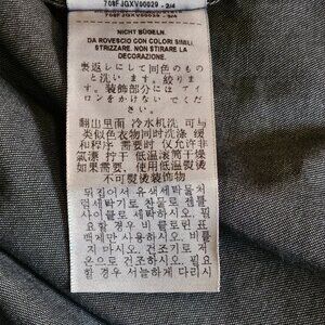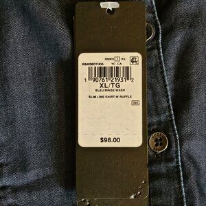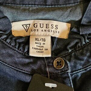 New With Tags stylish Guess dark-wash denim shirt with ruffled collar .