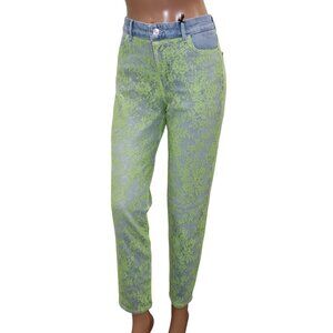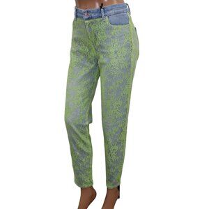 NWT GUESS High Waist Mom Jeans Green FLORAL Lace Overlay SKINNY Denim Jeans 28