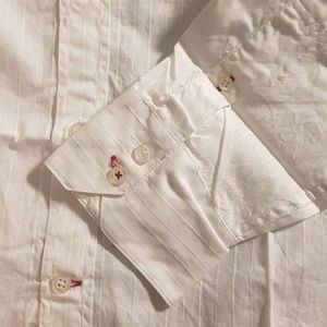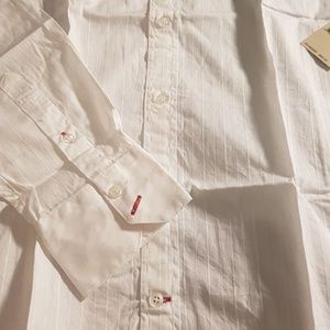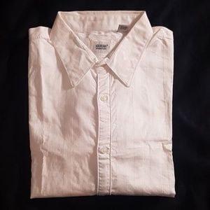 NWT GUESS Mens White Button Up Shirt with White on White Stripes - Size Large