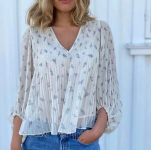 NWT Ganni Pleated Georgette Floral Blouse with Balloon Sleeves 40 EU (8 US)