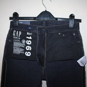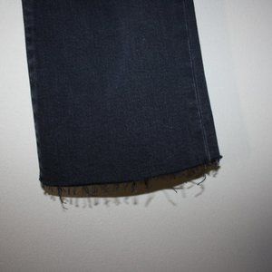 Cropped faded black boot cut/flare denim with "secret smoothing" pockets and raw hem from Gap