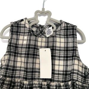 NWT Gap Kids, plaid sleeveless dress, black & off white,size large, size 12-18 months. Great for everyday wear layered with a t-shirt and tights, winter outfit with a turtleneck or Christmas time with a white shirt and cable knit tights! Beautiful side button detail as pictured, and pin tuck waistline. This is a new vintage piece so you will not see it anywhere else! Smoke free, pet free home.