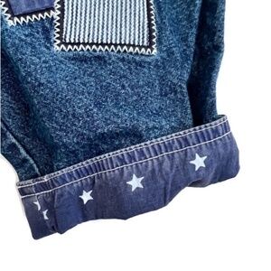 NWT Gap Kids unisex patchwork jeans, 6-12 months, size Medium, 17-22 Pounds, 27-39 inches. Beautiful detailing includes Star contrast cuffs, patterned patches, and hammer sling. The star cuffs can be worn rolled up with star detailing showing or uncuffed for extra length and a clean finish. Comfortable and practical elasticated waist!