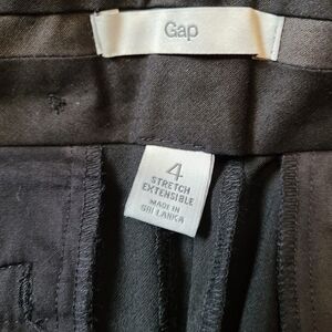 Gap, black, stretch extensible, straight leg, curvy fit, dressy pants. Zip-up fly with two clasps and button waist, two front pockets. Super comfortable, lightweight, in brand new condition with tag. size 4